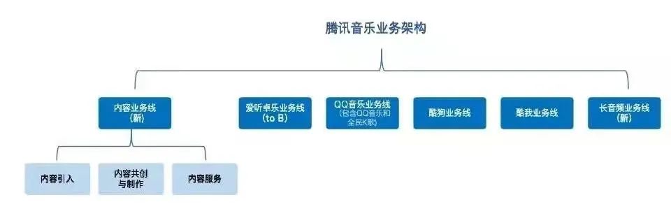 今年6月份,TME進行了一系列組織架構升級,宣佈成立內容業務線,負責內容板塊業務的整體規劃、戰略制定和統籌管理,集中資源,引入、共創、推廣優質音樂內容。這裏的內容不僅僅是音樂版權,還包括音樂視頻、線上線下演出、音樂綜藝等。騰訊音樂將加大內容共創制作、宣發等業務投入,為音樂產業提供全鏈條服務。此舉將內容戰略提到了前所未有的高度。平台層面,將成立全新的長音頻業務線,融入新收購的懶人聽書業務,併成立了整合協調跨平台長音頻業務的管理團隊;QQ音樂業務線下成立全新產品部門,將QQ音樂直播與全民K歌直播團隊進行了整合。