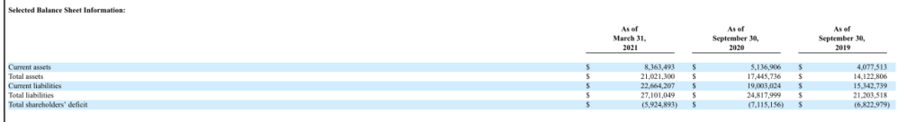 拆解來看,流動負債淨額呈現逐年增長的趨勢。從2019財年的1534.27萬美元增加至2020財年的1900.3萬美元。截至2021年3月31日,流動負債進一步增加至2266.42萬美元。不到三年時間,流動負債增長732萬美元,相當於2020財年營收的一半。