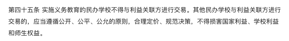 第四十五條規定,實施義務教育的民辦學校不得與利益關聯方進行交易。