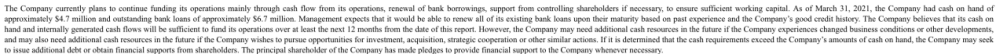 然而,金太陽手中的現金並不充足。截至2021年3月31日,金太陽教育的現金約465萬美元,還款壓力不小。對此,金太陽教育表示,根據過去的經驗和良好的信用記錄,能夠在現有銀行貸款到期時續借。