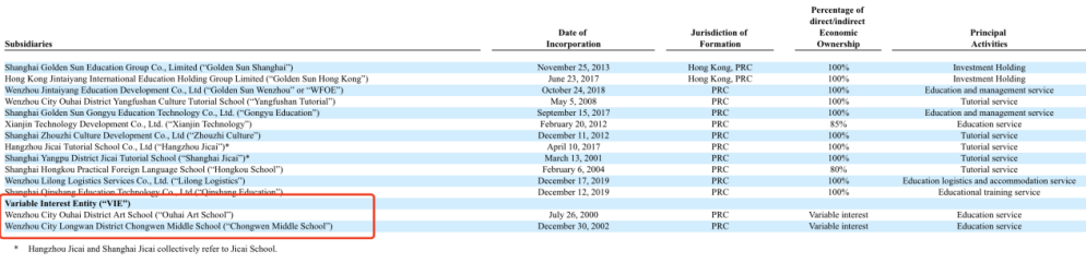 根據招股書,金太陽是一家控股公司,在2018年9月20日根據開曼羣島的法律成立。金太陽教育通過其全資子公司和實體通過合同協議控制(即VIE結構),在中國從事教育和管理服務。