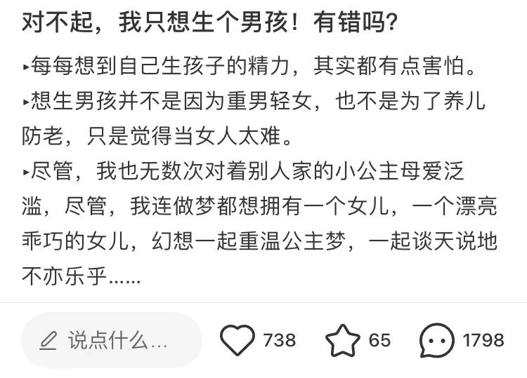 所以,那些不想生女兒的她們,看到了,也承認了這些困境。
