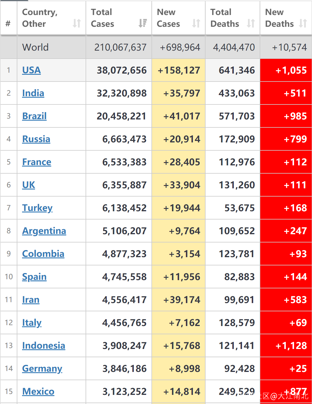 中國周邊國家形勢嚴峻:印尼新增確診15,768例,高位震盪下降,新增病亡1,128****例,全球排名第一;菲律賓新增確診10,698例;馬來西亞新增確診22,242例,再創新高,新增病亡225例,多家芯片大廠停產;泰國新增確診20,515例,高位震盪,新增病亡312例,創歷史新高;尼泊爾新增確診2,613例;緬甸新增確診2,878例;韓國新增確診1,803例,高位震盪;蒙古新增確診1,582例;柬埔寨新增確診593例。