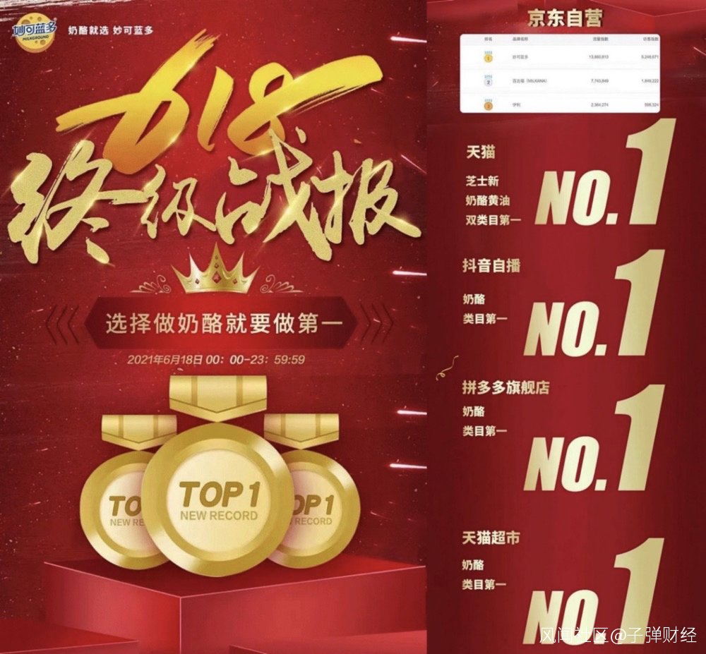 當時,在持續投放數月之後,妙可藍多已經一躍成為新的行業領導者,各項關注指數均超越了洋品牌。2019年“6·18”期間,妙可藍多拿下天貓、京東銷量雙冠王,同比增長超過300%。這些事實和數據都是最好的品牌信任狀,有助於搶奪奶酪消費的存量市場。