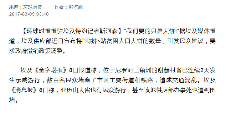 埃及人為了大餅示威遊行的報道