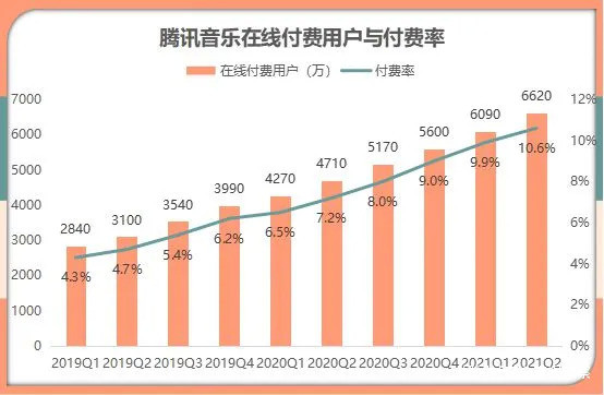 8月17日,TME發佈了2021年第二季度財報。根據財報顯示,2021年第二季度,TME總營收同比增長15.5%至人民幣80.1億元,淨利潤8.71億元,調整後淨利潤8.27億元。在線音樂付費用户突破6620萬,再創新高,付費率到達10.6%。