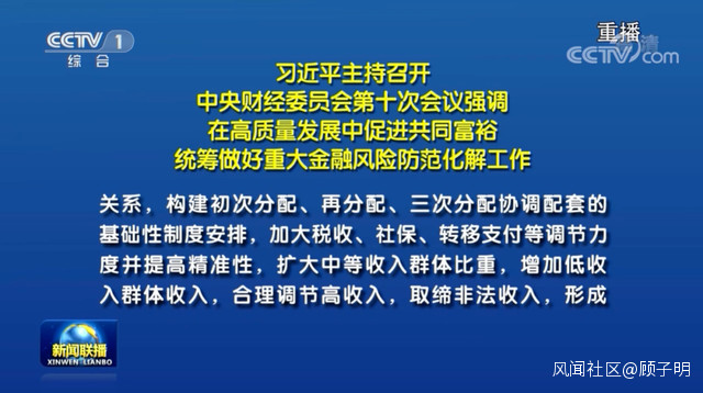 而昨天的中財委會議上,明確提出了兩個工作重點,一個是**“在高質量發展中促進共同富裕”,一個是“統籌做好重大金融風險防範化解工作”**。