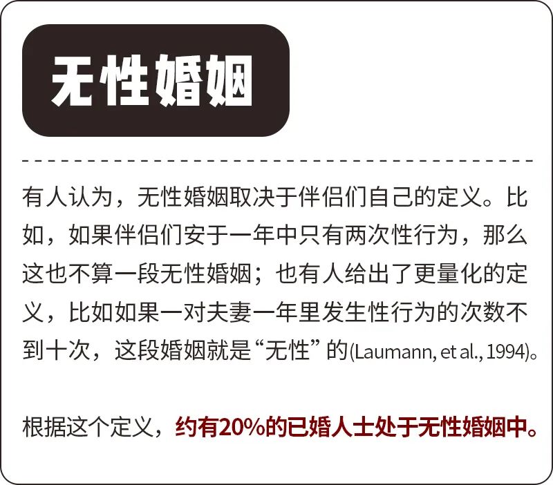 根據谷歌搜索的統計,“無性婚姻”已經成為了人們對婚姻的首要抱怨,每個月都有21000人在搜索無性婚姻,搜索量遠遠超過了“不開心的婚姻”和“無愛婚姻”(Stephens-Davidowitz, 2015)。