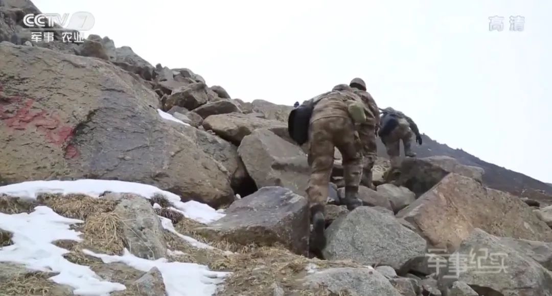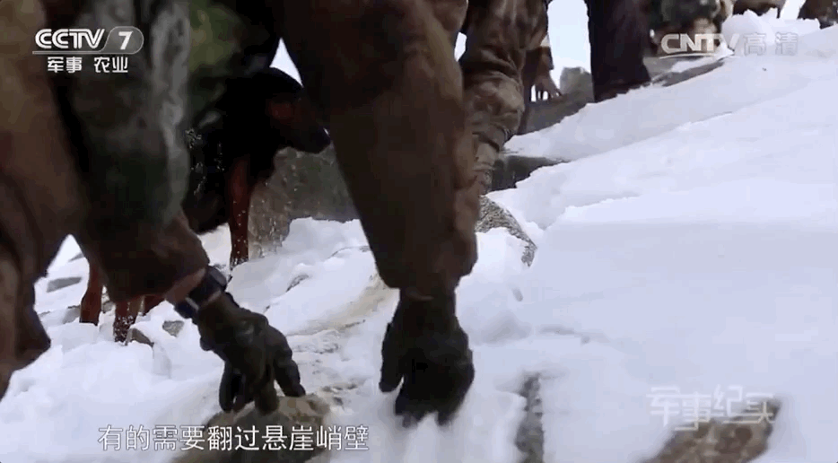 途徑冰河和峽谷,一路坡陡路滑,碎石遍佈,戰士們都會手腳並用地爬過去。