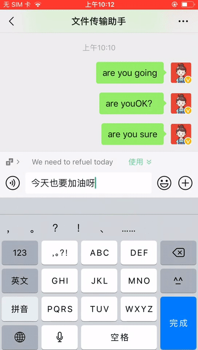長按輸入框即可開啓“邊寫邊譯”功能,或者連續發送三段英文亦可開啓此功能。支持將內容翻譯為英文、日文、韓語等多種語言。