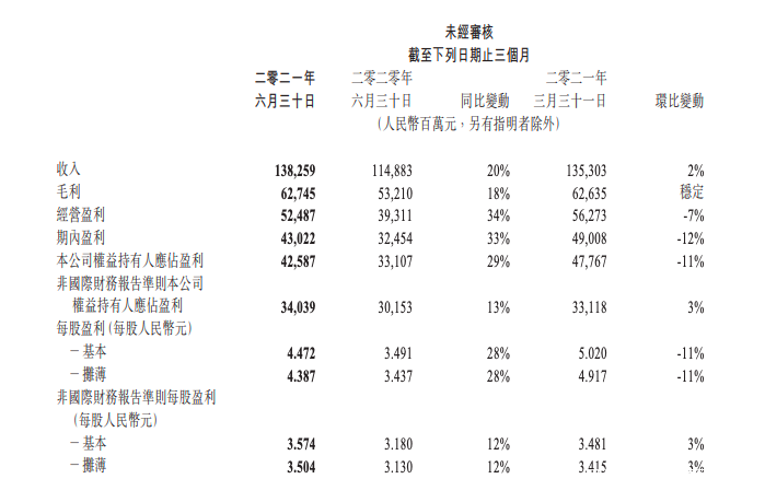 該公司二季度淨利潤為人民幣425.9億元,同比增長29%,因企業服務及廣告業務收入大幅增加,抵消了遊戲業務增長放緩的影響;當季收入增長20%,至人民幣1382.6億元,主要得益於廣告業務和數字支付產品收入的增加。