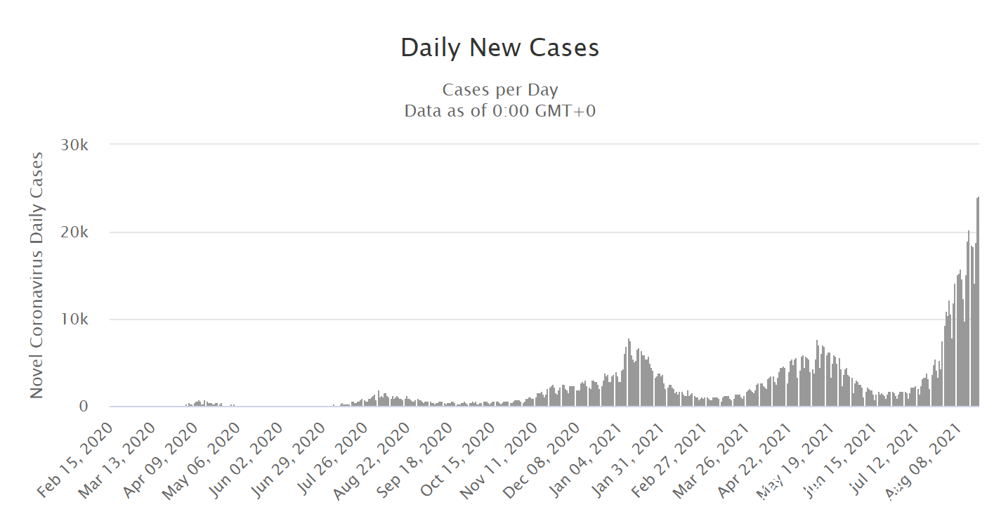 中國周邊國家形勢非常嚴峻:印尼新增確診20,004例,高位震盪,新增病亡1,348****例,全球排名第一;菲律賓新增確診16,788例,再創新高;馬來西亞新增確診23,564例,再創新高,新增病亡233例;泰國新增確診19,851例,高位震盪,新增病亡240例,高位震盪;尼泊爾新增確診2,079例;緬甸新增確診3,009例;韓國新增確診2,051例,高位震盪;蒙古新增確診1,841例;柬埔寨新增確診519例。