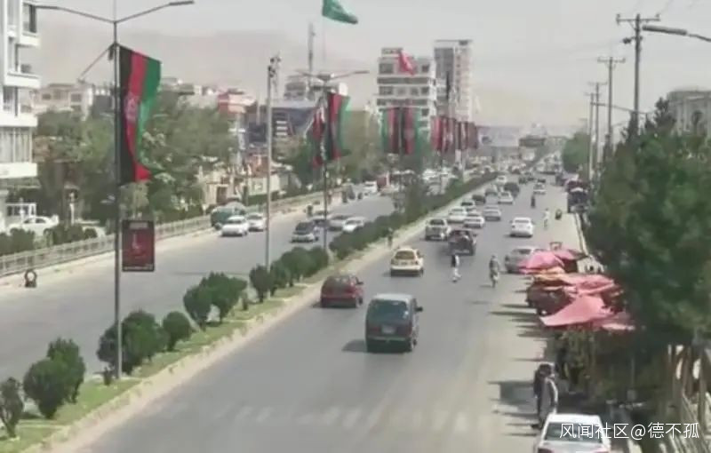 20日,餘勇走上喀布爾街頭,主路上的舊國旗還沒撤下。
