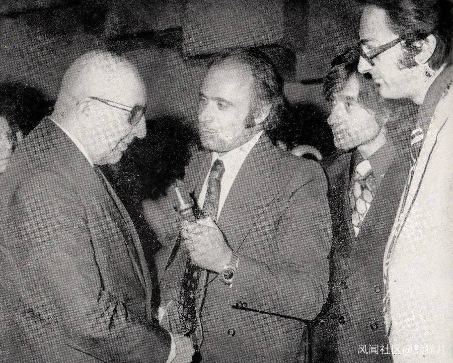 1974年,穆罕默德·達烏德漢(左一)接受採訪