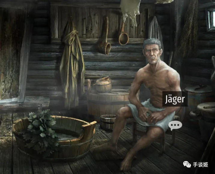 而且遊戲的對話文本和美術等都讓做任務的過程不至於感到枯燥,而俄味風情的一些人物還在遊戲內外給你帶來一些情趣。比如這位澡堂老哥,就讓人想到了某些漫畫情景: