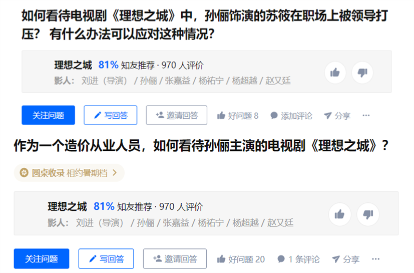 《理想之城》改編自若花燃燃小説《蘇筱的戰爭》,講述了建築造價師蘇筱在一次次職場歷練後脱穎而出,並幫助集團重振旗鼓的故事。不難看出這部劇相較同類作品的創新之處。一方面,建築行業是一個相對冷門的選題,但同時又與社會民生息息相關,讓觀眾既有新鮮感,又有參與感。