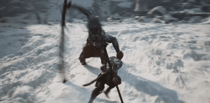 戰鬥場景是在雪地之中,那大刀一揮,漫天飛雪不説,地上全是戰鬥的痕跡。
