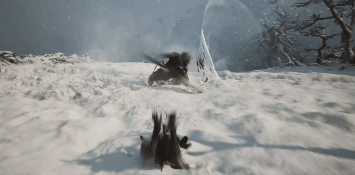 比如你開始的雪地場景,這種雪地上的腳印,原來我們只能在國外的頂級 3A 大作能看到,比如《 荒野大鏢客 2 》,《 最後的生還者 2 》。