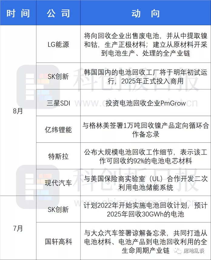 不約而同地,七八月份,新能源行業頭部廠商都開始關注電池回收行業,且動作疾如閃電,今天你官宣,明日我投資。