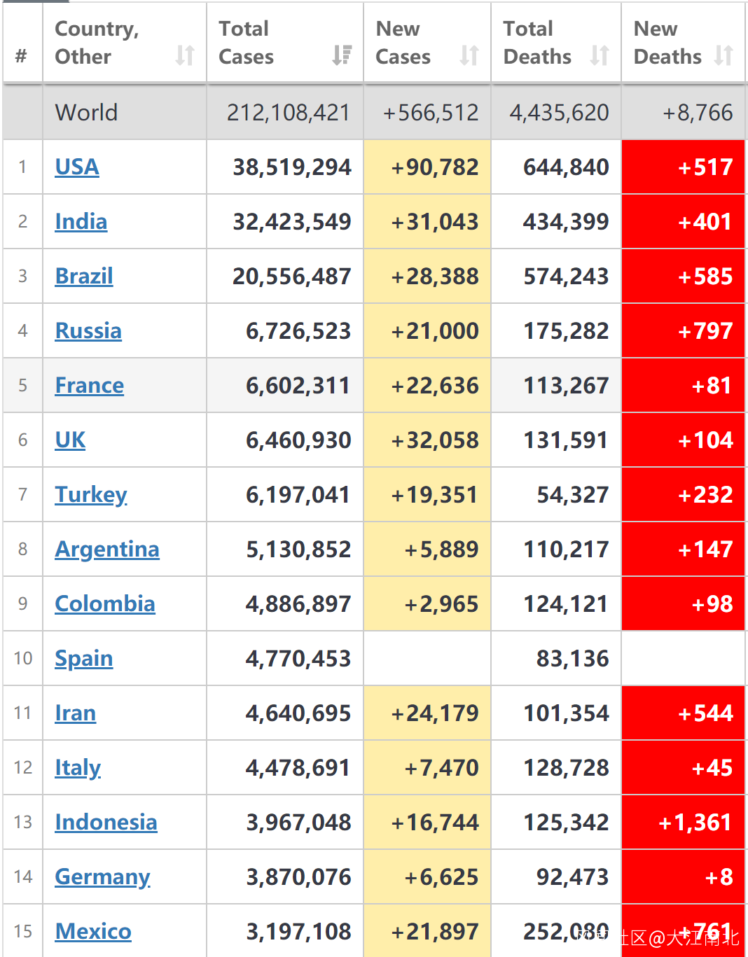 全球疫情第一大國美國新增確診90,782例,;累計確診3851.93萬例;新增病亡517例;累計病亡64.48****萬(週末效應)。