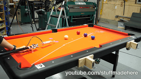 還有這種百發百中的籃筐和枱球杆(似乎小哥對自動瞄準這個事有些執念):