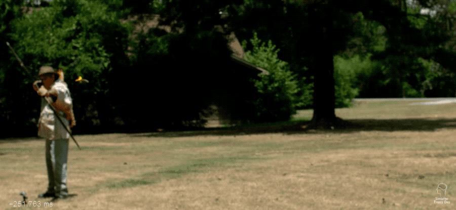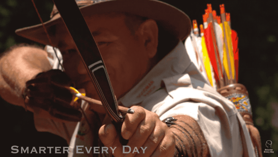 小哥通過慢鏡頭回放箭的飛行過程發現,這箭它咋不是筆直射出去的呢?