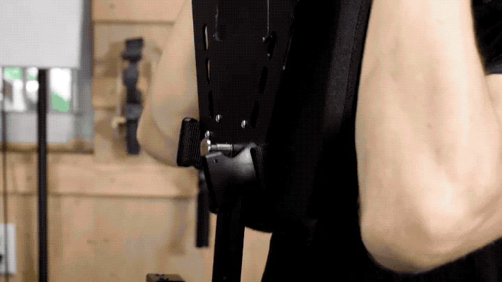 不過這也難不倒他,小哥又給自己做了一套裝甲,用整個上半身的力量支撐弓的重量。