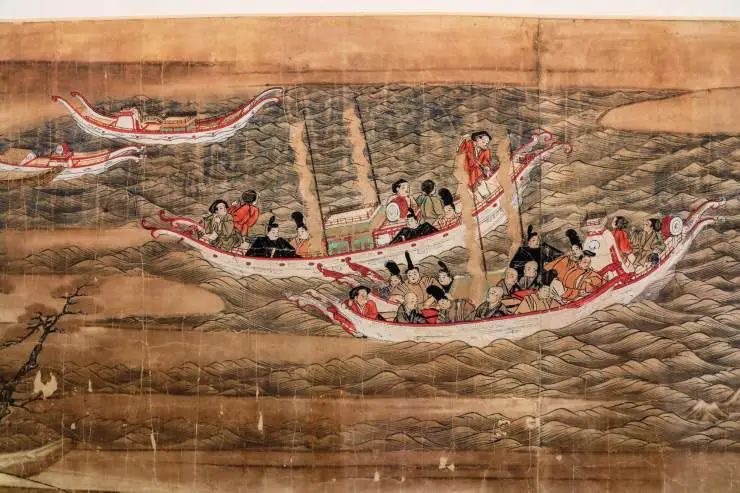戰鬥是早上八點左右開始的。中國北方士兵甲冑上的獸毛裝飾,日本軍頭盔上伸出的鹿角一樣的鍬形,在流動的光線和霧氣映襯之下,越發顯得詭異。雙方彼此端詳,覺得對方是一羣奇裝異服,行為也同樣詭異的野蠻人。遠處的海面上,無數士兵像蜘蛛一樣,攀着船舷邊的繩梯大網,從巍峨的鉅艦降到搖晃不已的小舟上。