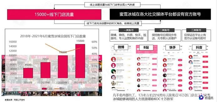 其次,得益於蜜雪冰城龐大且廣泛的下線渠道優勢,15000+線下門店成為蜜雪冰城線上傳播的KOC自有資產,而無限裂變的線上流量又為線下帶去高人氣,這種線下、線上彼此相互促進的模式,共同推動事件持續爆發。