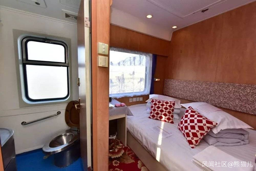 △擁有獨立衞浴的金鑽車廂,駱駝就在車窗外 / 中國鐵路官網
