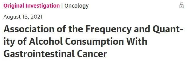 Association of the Frequency and Quantity of Alcohol Consumption With Gastrointestinal Cancer. JAMA Netw Open. 2021;4(8):e2120382. doi:10.1001/jamanetworkopen.2021.20382