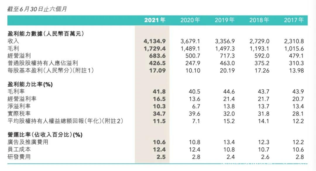 公告指出,截至2021年6月30日止六個月收入為41.35億元(人民幣,下同),按年上升12.4%;普通股股權持有人應占利潤為4.27億,同比增長72%。其中特步主品牌的收入增加12.4%至35.97億元;集團毛利率為41.8%,相比2020年上半年增長1.3%。