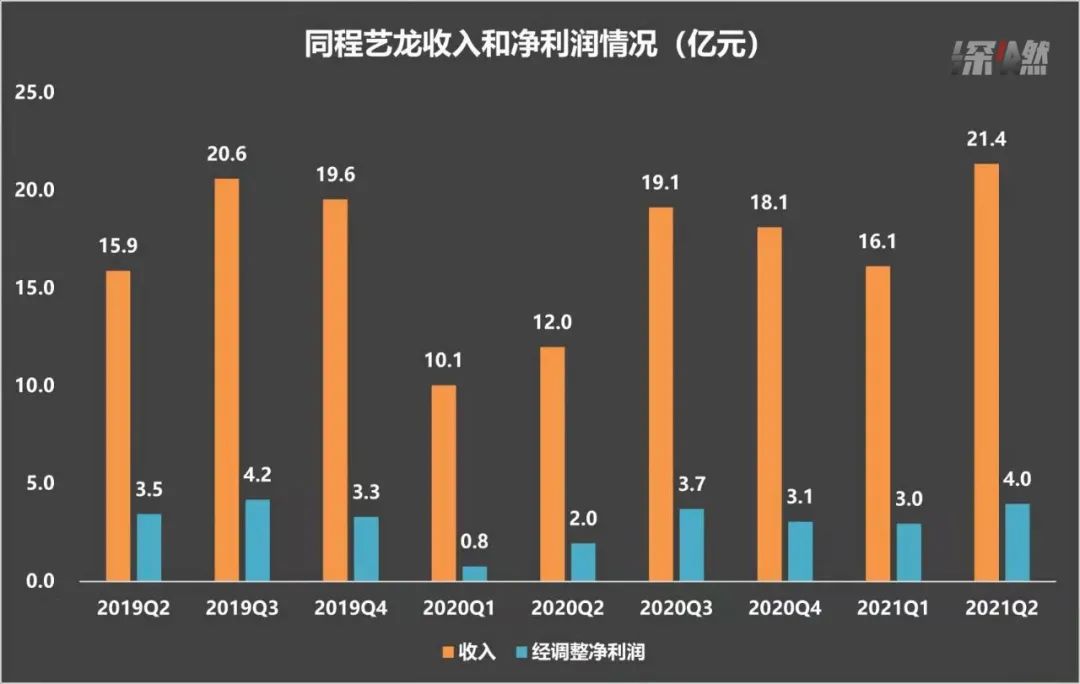 在收入上,同程藝龍今年一季度和二季度分別增長61%、78%,收入增速在加快。在淨利潤上,二季度同程藝龍實現經調整淨利潤3.98億人民幣,同比增長103%。