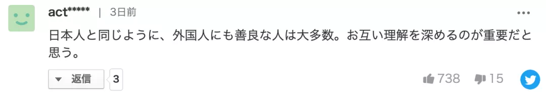 “這則新聞真棒。我曾經和中國人交過朋友,説實話,他們比日本人更有同情心。雖然説在禮儀等方面,會有一些固有印象,覺得他們的價值觀與日本人不同,但這並不是中國才有的問題。在媒體的作用下,中國被塑造成了一個容易被打倒的國家,他們只對中國進行負面的談論,比對韓國還苛刻。實際上中國有許多值得尊重的地方。”
