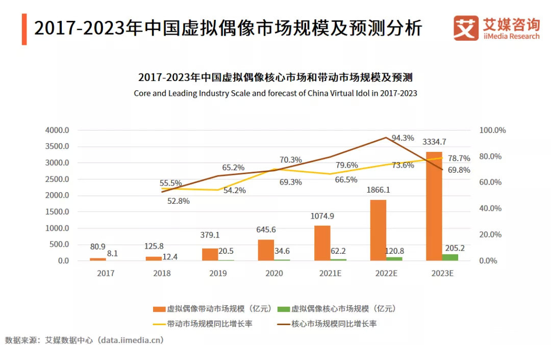 虛擬偶像的確巨大的發展潛力和市場空間,根據艾媒諮詢發佈的《2021中國虛擬偶像楊和發展及網民調查研究報告》顯示,2020年中國虛擬偶像核心產業規模微博3.6億元,同比增長70.3%,預計2021年將達到62.2億元。但或許更有可能是一種娛樂方式的補充。
