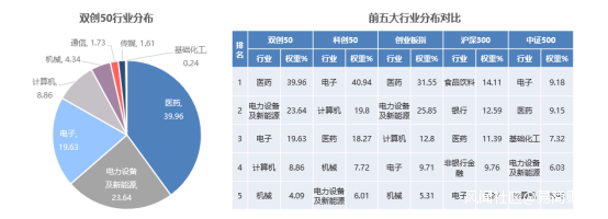 雙創50指在科創創業兩版總共涵蓋九大科技方向,分別是科創板的:新一代信息技術,高端裝備,新材料,新能源,節能環保,生物醫藥,以及創業板的新服務業,高技術消費,商業模式創新!