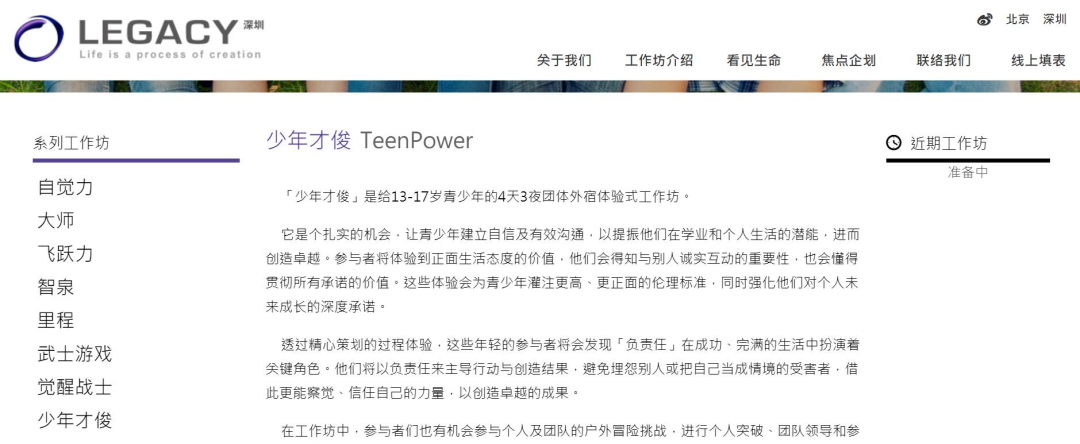 “里程LEGACY”是什麼來頭?單看名字,一股濃厚的中二氣息撲面而來。這還不算什麼,打開其官網網站,系列工作坊條目之下,又有“大師”、“武士遊戲”、“覺醒戰士”等等分類選項。