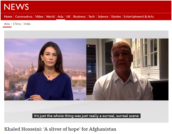 對於現在阿富汗政治局勢的變化,美籍阿富汗作家、小説《追風箏的人》的作者卡勒德·胡賽尼流露出失望和擔心。