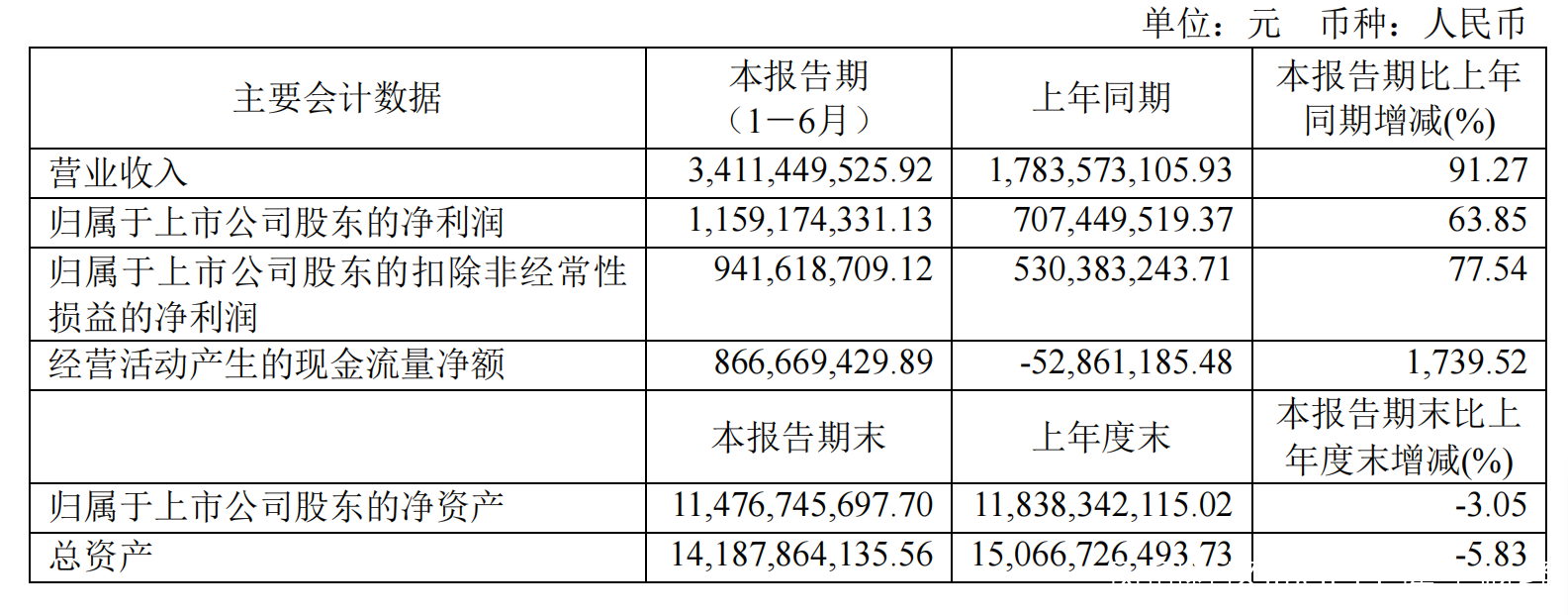 2021年8月22日,“植物蛋白第一股”養元飲品發佈2021年半年報顯示,養元飲品2021年上半年實現營業收入34.11億元,同比增長91.27%;淨利潤11.59億元,同比增長63.85%。