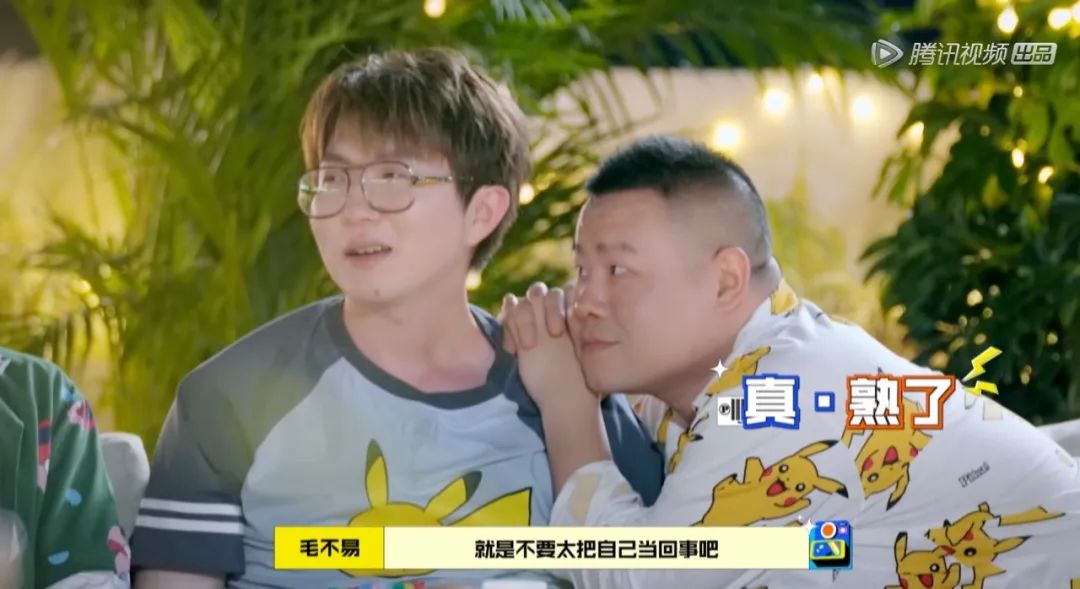 **在社交的眾生相里,藏着年輕人的愛與怕,勇氣與怯懦,堅韌和頹喪。**當毛不易開始寫歌給更多的人聽,當王嘉爾鼓勵INTO1劉彰邁出第一步,當岳雲鵬坦言一直沒有放棄音樂,當大張偉談自己低谷期在節目中得到的救贖,觀眾收穫的是難以量化的社交能量。