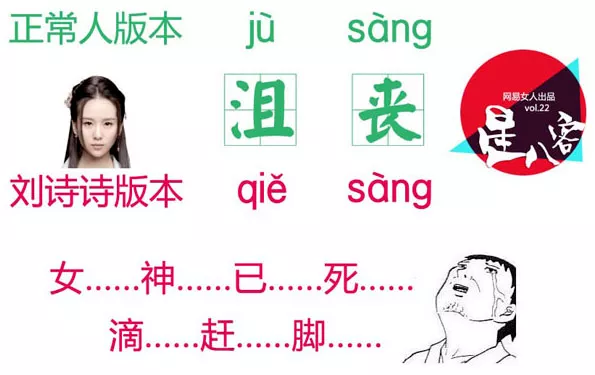 (劉詩詩把“沮喪”讀成了“且喪”嗯?正常人不應該是三聲嗎?)