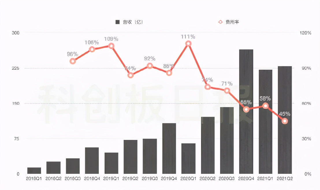 先看拼多多在Q2盈利的原因,從數據上來看,主要是由於其營銷成本的控制,拼多多在Q2的銷售與市場推廣費用為104億元,比今年Q1大幅降低了30億元,其銷售費用率實現了上市以來的新低。