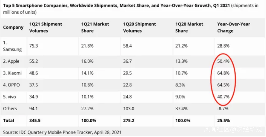 關於此,我們在《小米的Q1業務,並不像財報那樣美麗》已經詳細解釋過了,隨着華為的敗退,一大片市場被空了出來,其餘智能手機企業都有着不同比例的上漲,也紛紛拿下了自己的歷史新高。