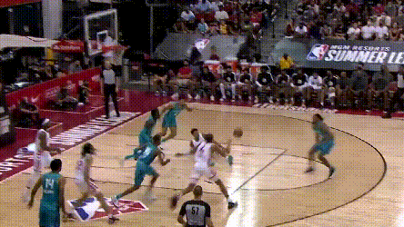 落入陣地戰之後,巴恩斯的持球進攻,給人留下最深印象的還是他的身體尺寸,如果讓巴恩斯衝殺進去了,他有不小的威脅,這點在對陣黃蜂的第四節體現得非常明顯。