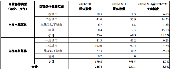 不過從區域來看,分眾傳媒目前的點位資源仍集中於一二線城市。財報顯示,公司80%的電梯電視媒體和84.9%的電梯海報媒體都分佈在一二線城市,而且三線及以下城市的媒體數量還呈下降趨勢。