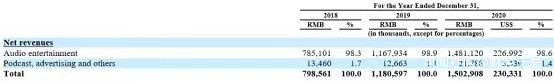 數據顯示,2020年第四季度,荔枝音頻娛樂付費用户有42.21萬人,粗略計算年付費用户有535.2萬人,對應音頻娛樂業務ARPU(每用户平均收入)達276元,遠高於同期的喜馬拉雅付費用户(58元)。