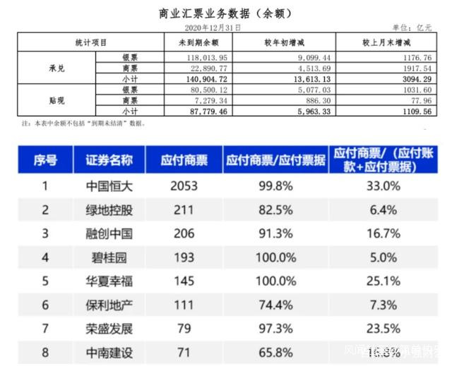 公開資料顯示,恒大是我國商業承兑匯票簽發量最高的公司,規模佔全國的十分之一。