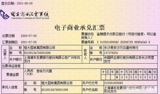 銀行到期債務解決了,但到期的商票持有人可沒那麼幸運了,恒大沒錢,暫時無法兑付。