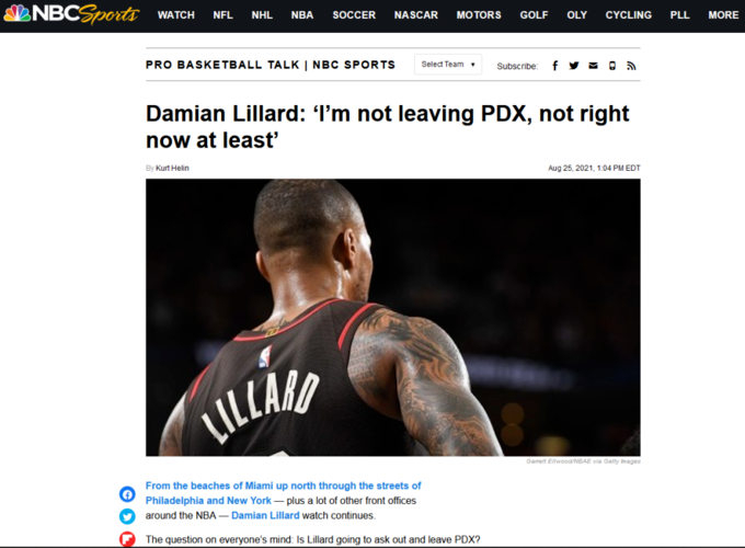 他説完這句話之後不久,NBC的體育記者Dan Feldman便報道説:利拉德想要給開拓者的新教練昌西一個機會。