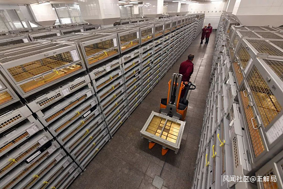 紐約美聯儲銀行地下金庫,是世界上最大的金庫,存儲着很多國家和經濟體的黃金。